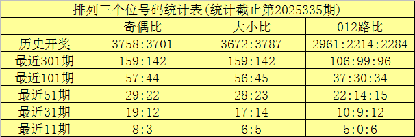 上期回顾:排列三第2025335期奖号为:276。奖号形态组六,大小比2:1,奇偶比1:2,012路1:1:1。