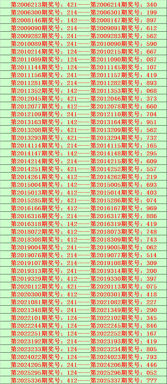 开奖回顾:体彩排列三第2025336期奖号为:412,类型:组六。