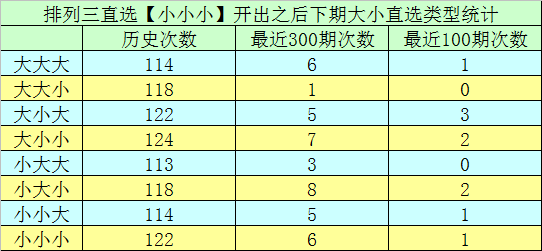 2.在前9次直选【小小小】组合之后,下期开奖号码分别为:514-281-875-627-052-300-843-527-109,组三包含1期,组六包含8期。本期奖号排除对子,看好开出组六。