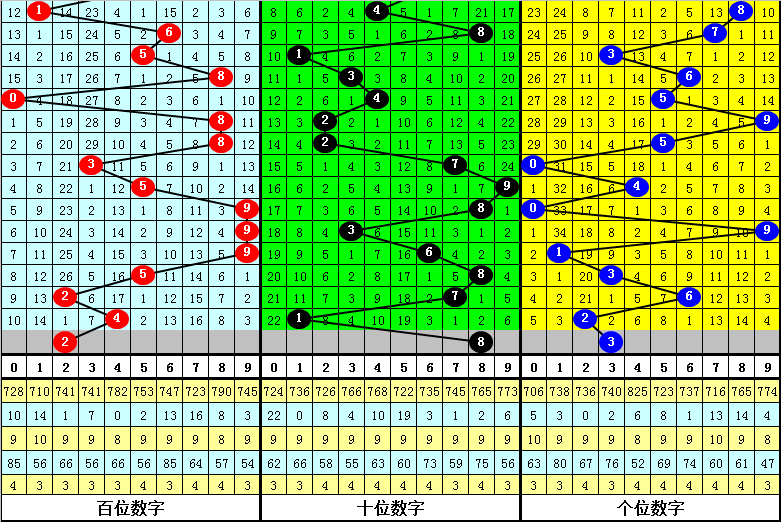 3.在以上9期奖号中,号码012路比分别开出0:2:1、0:1:2、0:1:2、1:1:1、1:0:2、3:0:0、1:1:1、0:1:2、2:1:0,012路出现个数比为8:8:11,本期预计开出012路比1:0:2。