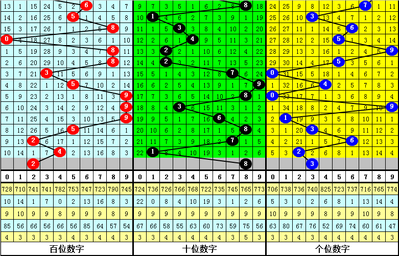 其中,组三开出3次,组六开出16,单选号码0-9分别出现: