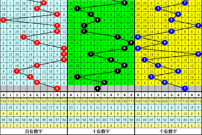 百位:上期开出5,奇数,偶号最近两周开出较少,本期关注偶号,参考8。