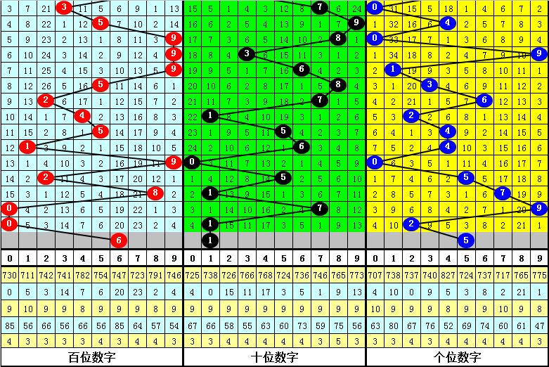 百位:当前遗漏最大的号码为7,遗漏23期,历史上该号最大遗漏为64期,本期百位继续排除号码7。