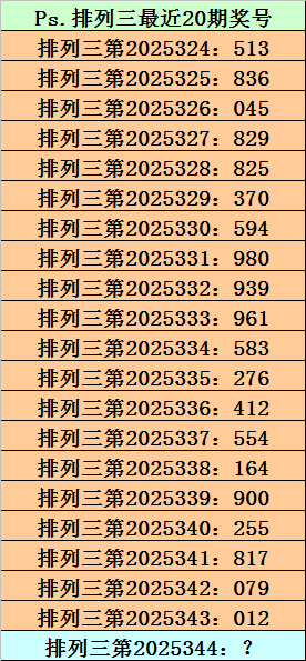 排列三第2025344期单注参考:615