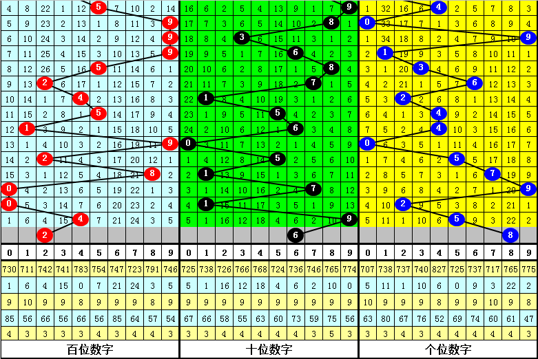 第二位杀号:第二位上期开出奖号为9,该位历史上奖号9开出了774次,最近100次第二位奖号出现9后,下期落号0-9次数从高到低分别为:号码4→13次,3、6→12次,1、5→11次,2、7、9→9次,0、8→7次。
