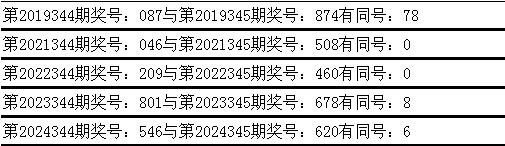 与前期历史同期奖号对比分析,在最近五年开奖中,第344期同期奖号与第345期同期奖号都出现了相同号码:
