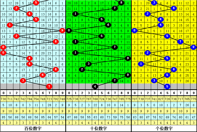 2、个位连续两期出现号码6和3之后,下期号码0-9开出个数分别为,号码0出现4次、号码1出现9次、号码2出现8次、号码3出现6次、号码4出现8次、号码5出现2次、号码6出现5次、号码7出现7次、号码8出现8次、号码9出现6次;