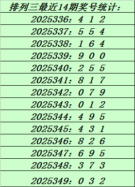 上期回顾:排列三第2025349期奖号:032。和值5,跨度3。
