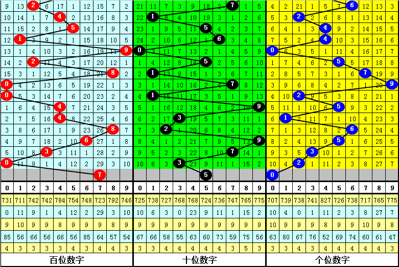 个位:1、2路号较热,本期防0路号反弹,关注0。