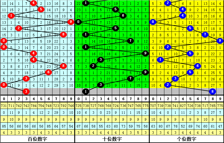 其中,号码0-9开出次数分别为:号码0开出3次、1开出3次、2开出4次、3开出4次、4开出2次、5开出4次、6开出2次、7开出3次、8开出2次、9开出3次。