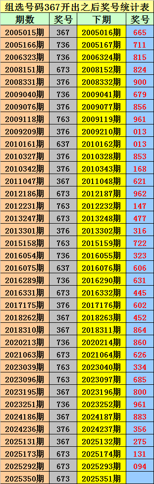 组选367之后,0-9号码分别开出:
