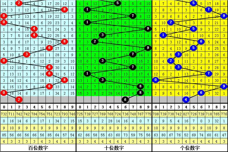 3.在以上9期奖号中,号码012路比分别开出1:1:1、0:2:1、1:2:0、0:2:1、1:1:1、0:2:1、0:2:1、1:1:1、1:2:0,012路出现个数比为5:15:7,本期预计开出012路比1:1:1。