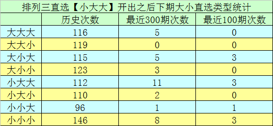 2.在前9次直选【小大大】组合之后,下期开奖号码分别为:057-247-497-178-618-412-817-012-431,都是组六。本期奖号排除对子,看好开出组六。