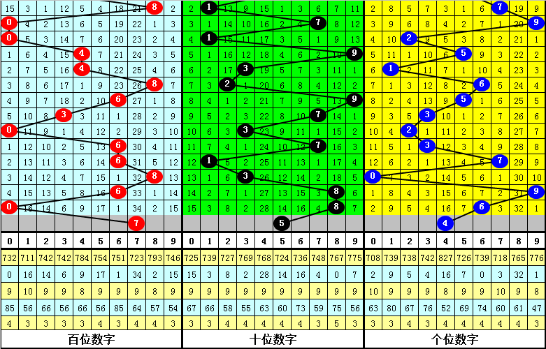 上期第一位开出奖号:0,间隔4期出现,表现较热,最近10期该位冷码出现次数较少,本期重防该位冷码解冻,参考号码7。