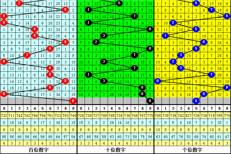 百位:上期开出0,近10期012路比为7:1:2,其中0路号连开2期,本期关注0路号,参考9。