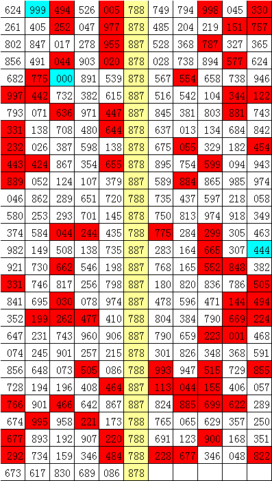 在以上统计表中,组选号码788开出之后,其下期组三号码出现4次,组六号码出现23次。其中,下期奖号有5期无重号,有22期开出重号,本期预计重号开出,看好开出组六号码。
