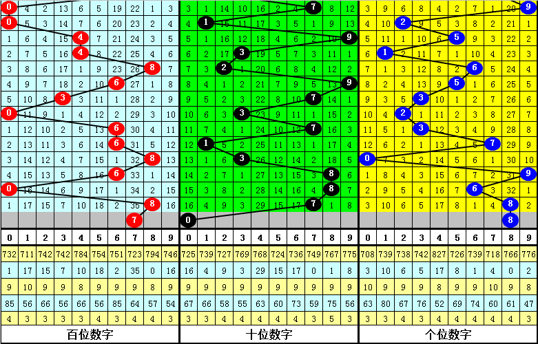 其中,组三开出3次,组六开出19,单选号码0-9分别出现: