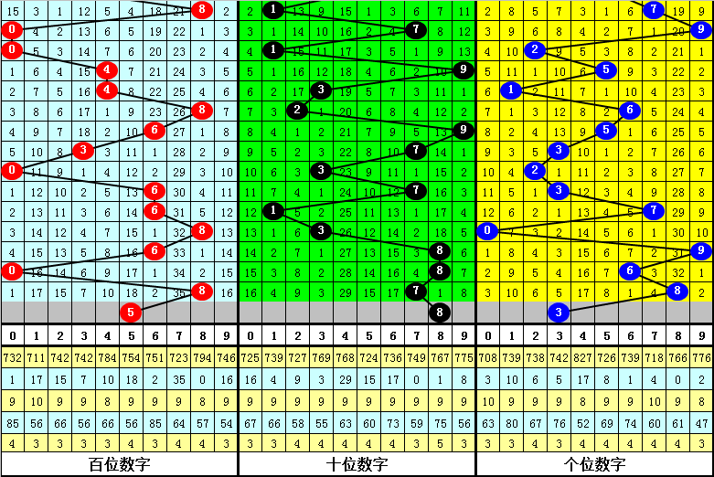 第二位0-2之间的小 号开出9个,目前遗漏4期,其中号码0出现1次,目前遗漏16期;号码2出现3次,目前遗漏9期;号码1出现4次,目前遗漏4期。