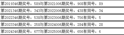 与前期历史同期奖号对比分析,在最近五年开奖中,第346期同期奖号与第006期同期奖号都出现了相同号码: