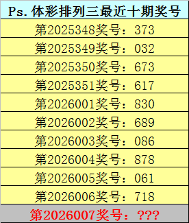 排列三第2026007期单注参考:406