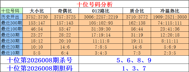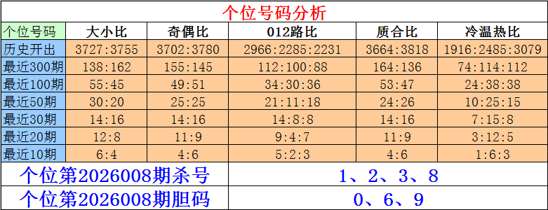排列三个位第2026008期杀号:1、2、3、8