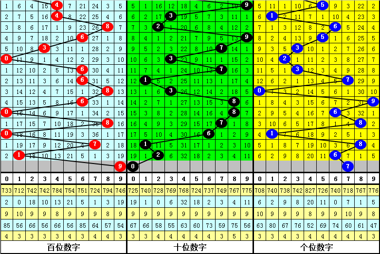其中,734,表现最热,本期防落号,参考:7;860,表现最冷,本期不会全出,杀一码:6。