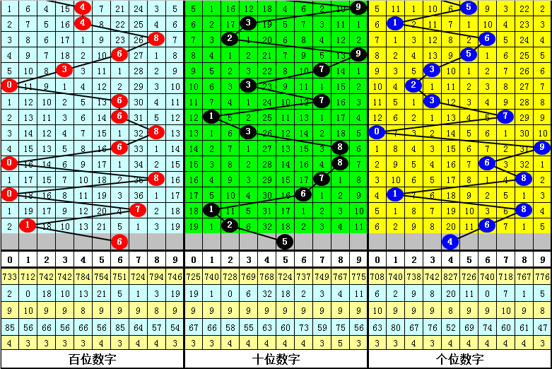 百位:上期开出1,奇数,偶号最近两周明显活跃,遗漏2次,本期防止偶号回补,参考6。