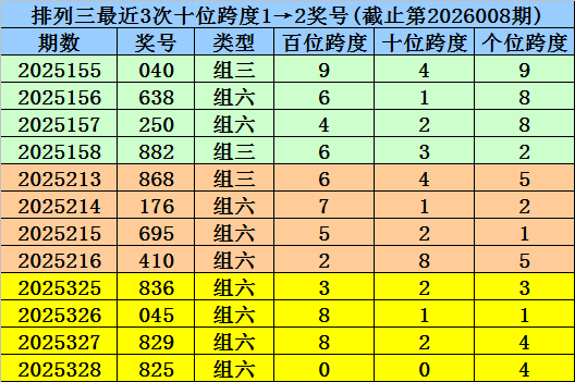 第2025155-第2025157期奖号:040、638、250,其下期奖号为:882,首位号码跨度为6;