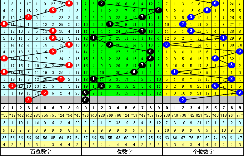 百位目前最冷号码为:9,当前遗漏20期,该号码历史最大遗漏为54期,本期防百位9解冻;