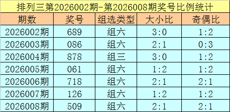 排列三第2026008期回顾:奖号509,奇偶比2:1,大小比2:1,和值14,类型:组六。