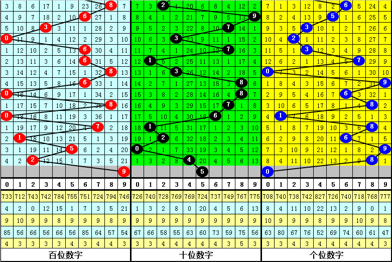 5.下期奖号跨度分别开出:4、2、5、3、5、4、7、6、4、1,其中跨度012路比为2:5:3,大小比4:6,奇偶比为5:5,本期适当关注0路跨度开出,参考跨度9。