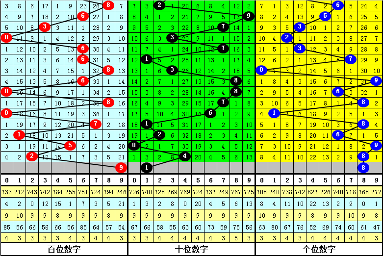 跨度分析:在排列三第010期历史同期中,奖号跨度012路比为9:5:8,奇偶比为11:11,大小比为14:8,跨度出现期数为:跨度5、6→5期,跨度2、3、4、7→2期,跨度0、1、8、9→1期,本期预计开出2路跨度,精选跨度8。