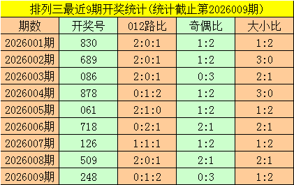 一、排列三第2026009期开出号码248,其奇偶比为0:3,大小比为1:2,号码012路比为0:1:2。该号码直选历史上出现了5次。