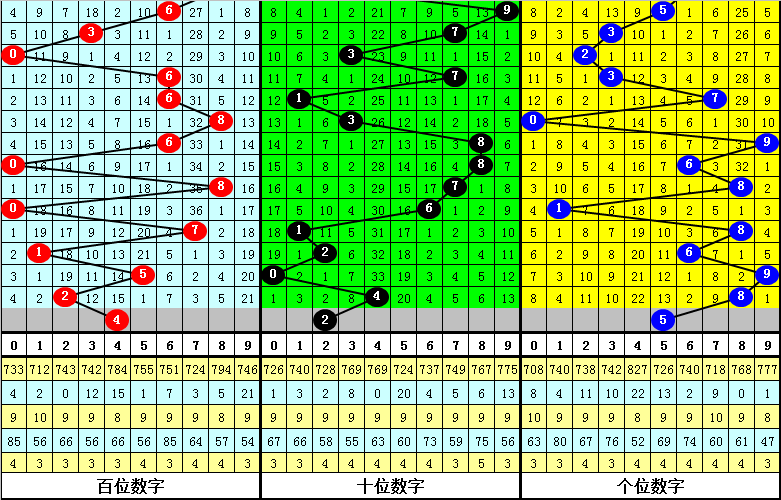 三、体彩排列三前9周星期六奖号分别开出:141-497-109-865-045-961-255-695-086,其中号码012路比为11:8:8,奇偶比为14:13,大小比为16:11;