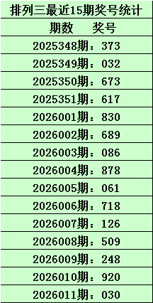 开奖回顾:排列三第2026011期开出奖号:030,其类型为:组三,直选形态为:偶奇偶、小小小、000路、温温热、合质合。
