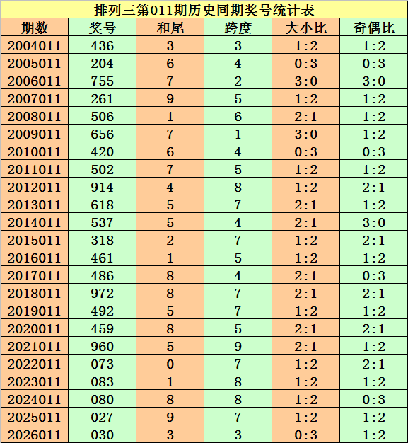 历年第011期排列三同期奖号开出:436、204、755、261、506、656、420、502、914、618、537、318、461、486、972、492、459、960、073、083、080、027、030。