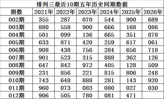 上期回顾:排列三第2026011期奖号:030,组三,直选遗漏总值为14期。