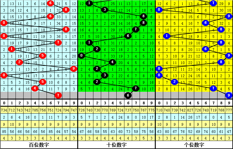 百位号码奇偶比为3:3,奇偶号码出现比例相当,本期防止开出奇数号码;大小比为1:5,大号走势较冷,本期预计开出大号。