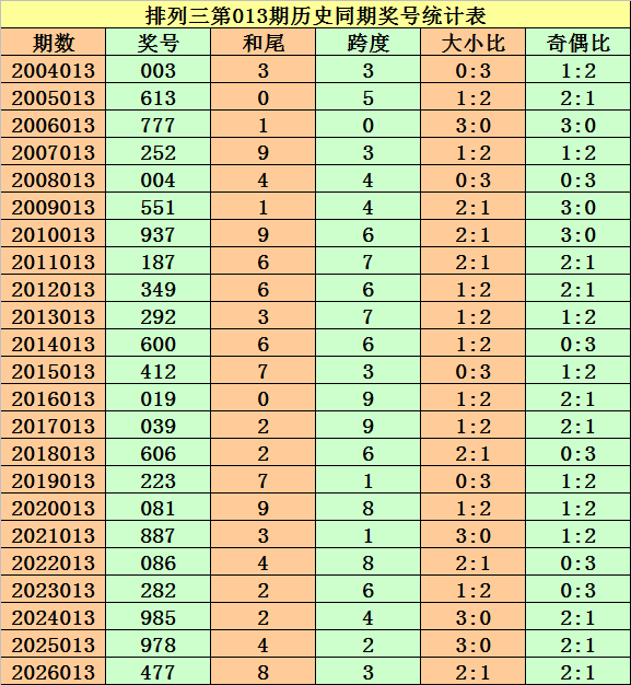 历年第013期排列三同期奖号开出:003、613、777、252、004、551、937、187、349、292、600、412、019、039、606、223、081、887、086、282、985、978、477。