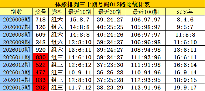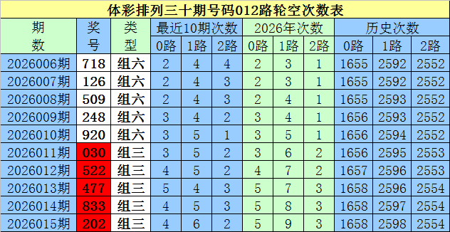 开奖回顾:排列三第2026015期奖号为:202,号码012路比为1:0:2。