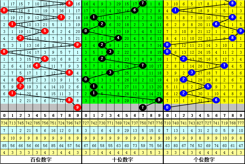 4.下期奖号和值分别为:6、19、9、7、14、18、16、23、7、9,和值奇偶比为6:4,大小比为5:5,和值012路比为4:4:2,本期注意大和值出现,参考和值16。
