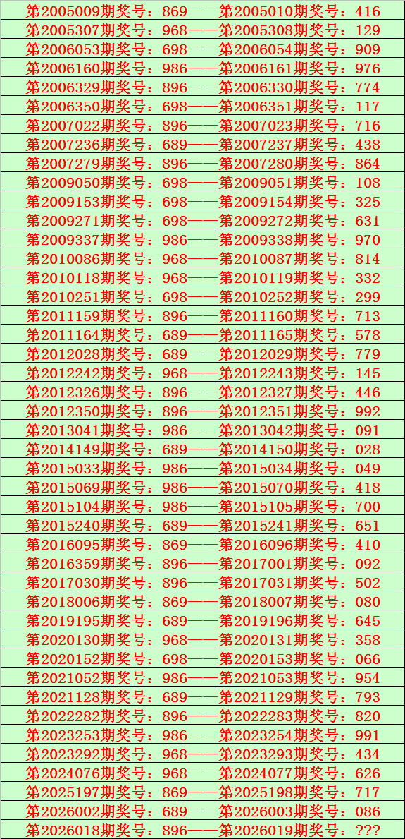 开奖回顾:体彩排列三第2026018期奖号为:896,类型:组六。