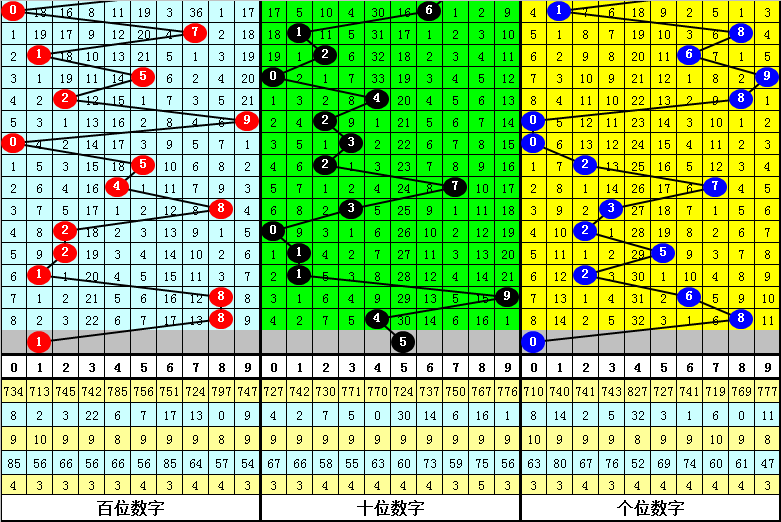 首位跨度分析:首位号码最近3期奖号为1-8-8,连续两期跨度为7、0,历史上首位号码连续两期分别开出跨度7、0的现象共出现49次,其前两次开出奖号分别为: