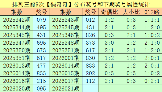 上期回顾:排列三第2026020期开出奖号095,类型为:偶奇奇、002路和小大大。