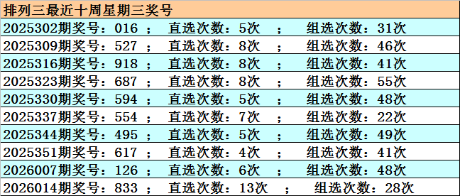 开奖回顾:排列三2026020期开奖:095,组六,和值14,跨度9,奇偶比2:1,大小比2:1。