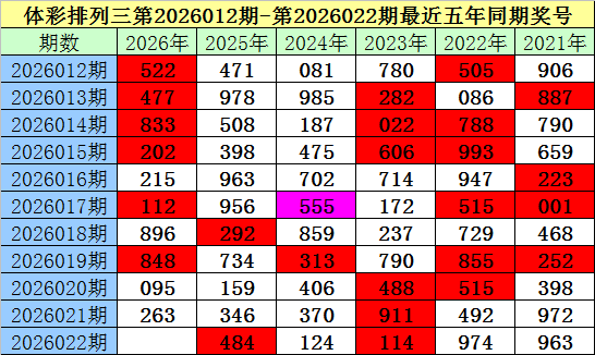 夏姐体彩排列三第2026022期奖号推荐: