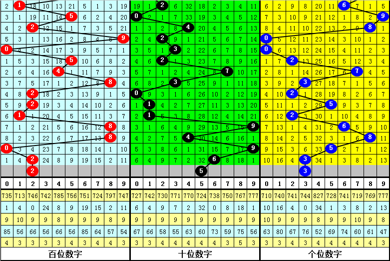 百位分析:百位最近9期出号:4-8-2-2-1-8-8-0-2,奖号奇偶比为1:8,012路比为1:2:6,大小比为3:6,本期百位参考号码248。