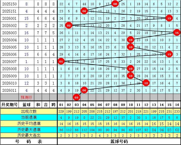 蓝球分析:上期蓝球开出号码04,与前期对比下降8个点位,最近10期蓝球号码大小比为7:3,本期预计小 号蓝球再出,关注蓝球03。