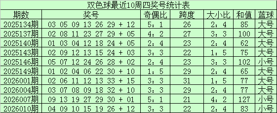 奇偶走势分析:上期开出奇偶比为3:3,上周四红球奇偶比3:3,最近十周四奇偶红球走势基本平衡,本期看好偶数红球热出,参考奇偶比1:5。