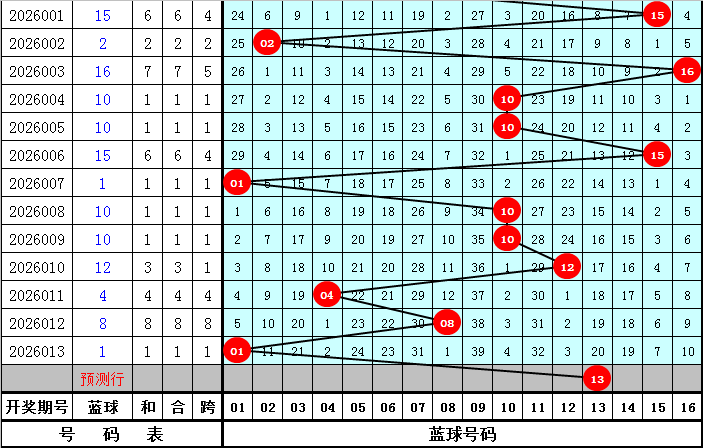 本期蓝球预计出现在:06、07、09、13、14之中,蓝球绝杀8码:01、02、04、05、08、10、12、15。
